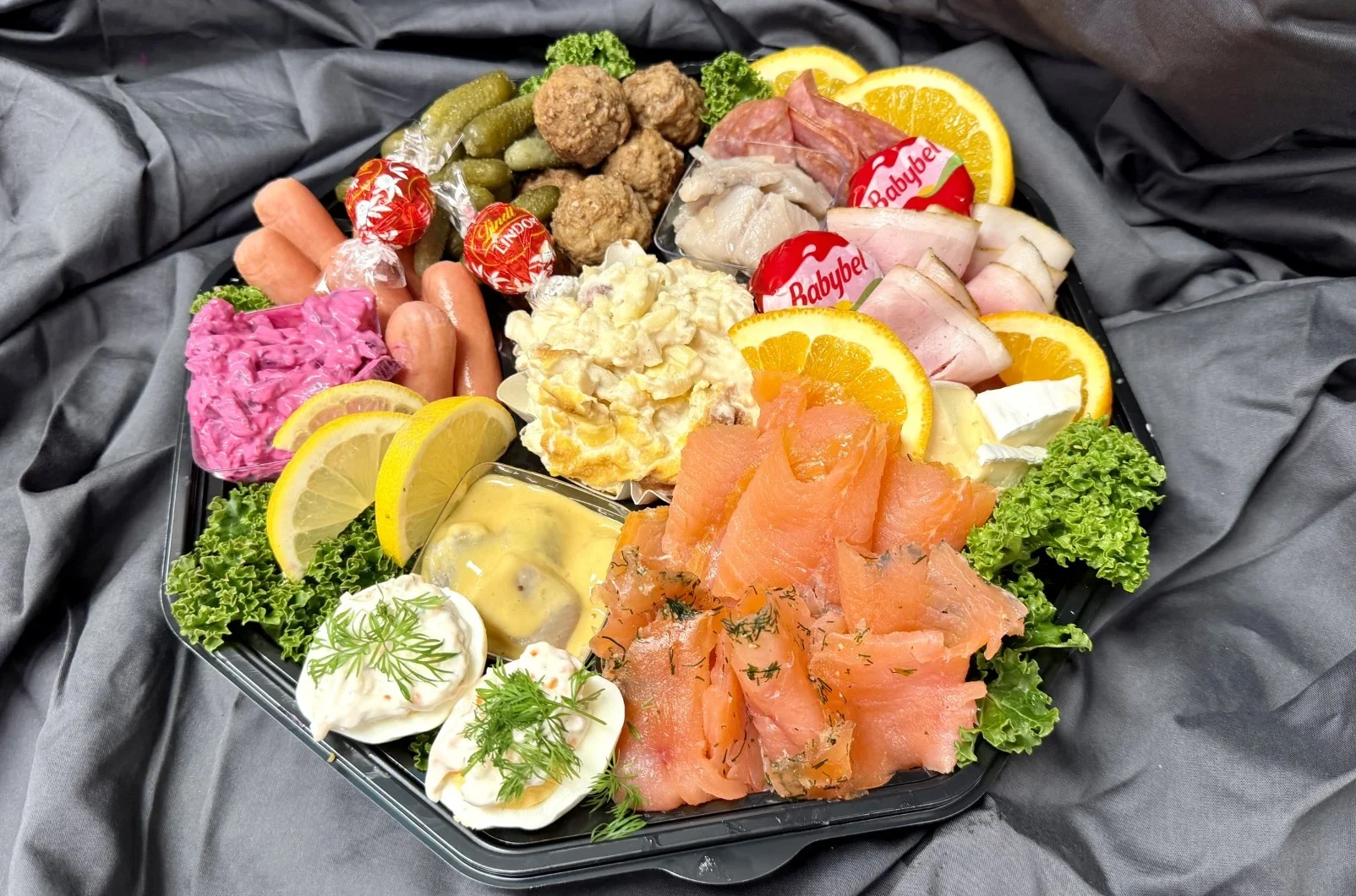 Vår delikatessavdelning erbjuder ett gott sortiment av catering.