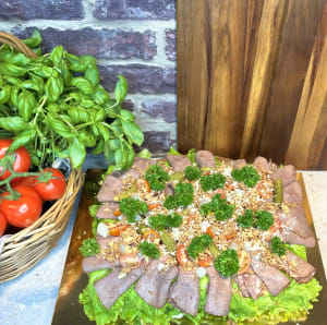 Smörgåstårta med rostbiff & potatissallad