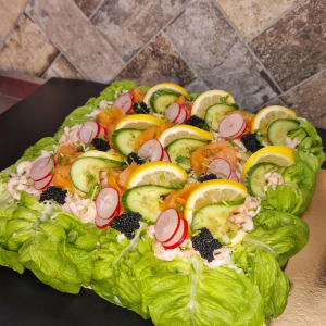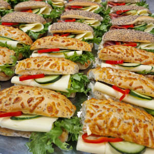 Från vårt kök kan ni välja mellan bland annat smörgåstårtor, festfat, läckra tapasfat och mycket annat gott.