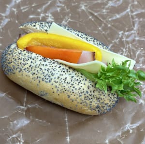 Minibaguette med ost och skinka