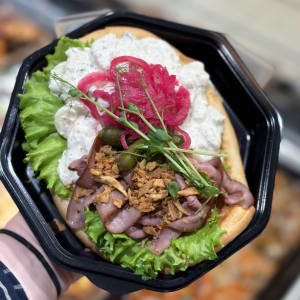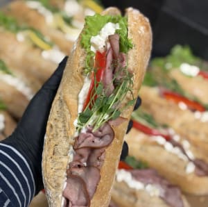 Baguette med rostbiff och potatissallad