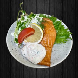 Varmröktlax tallrik med potatissallad