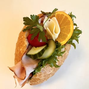 Baguette med ost och skinka